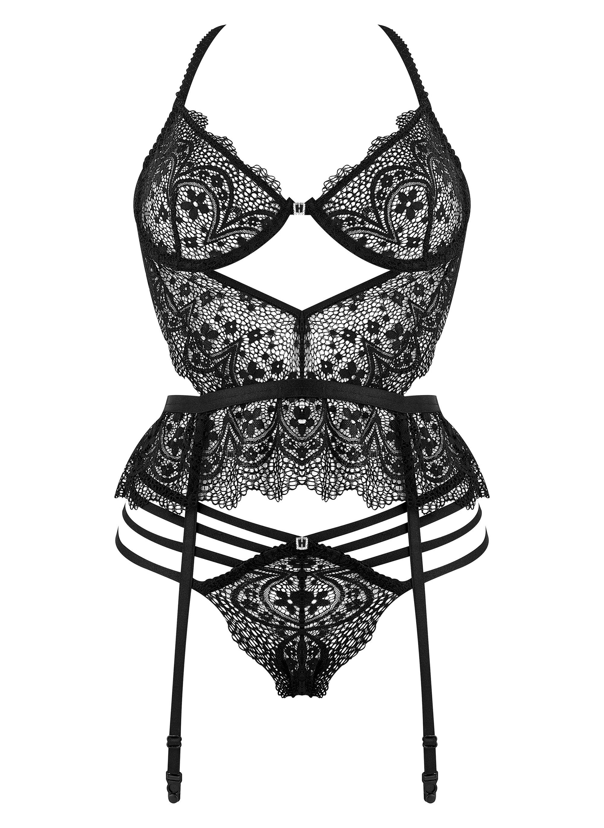 CORPETE E TANGA LACE TEMPTATION PRETO BEAUTY NIGHT FASHION