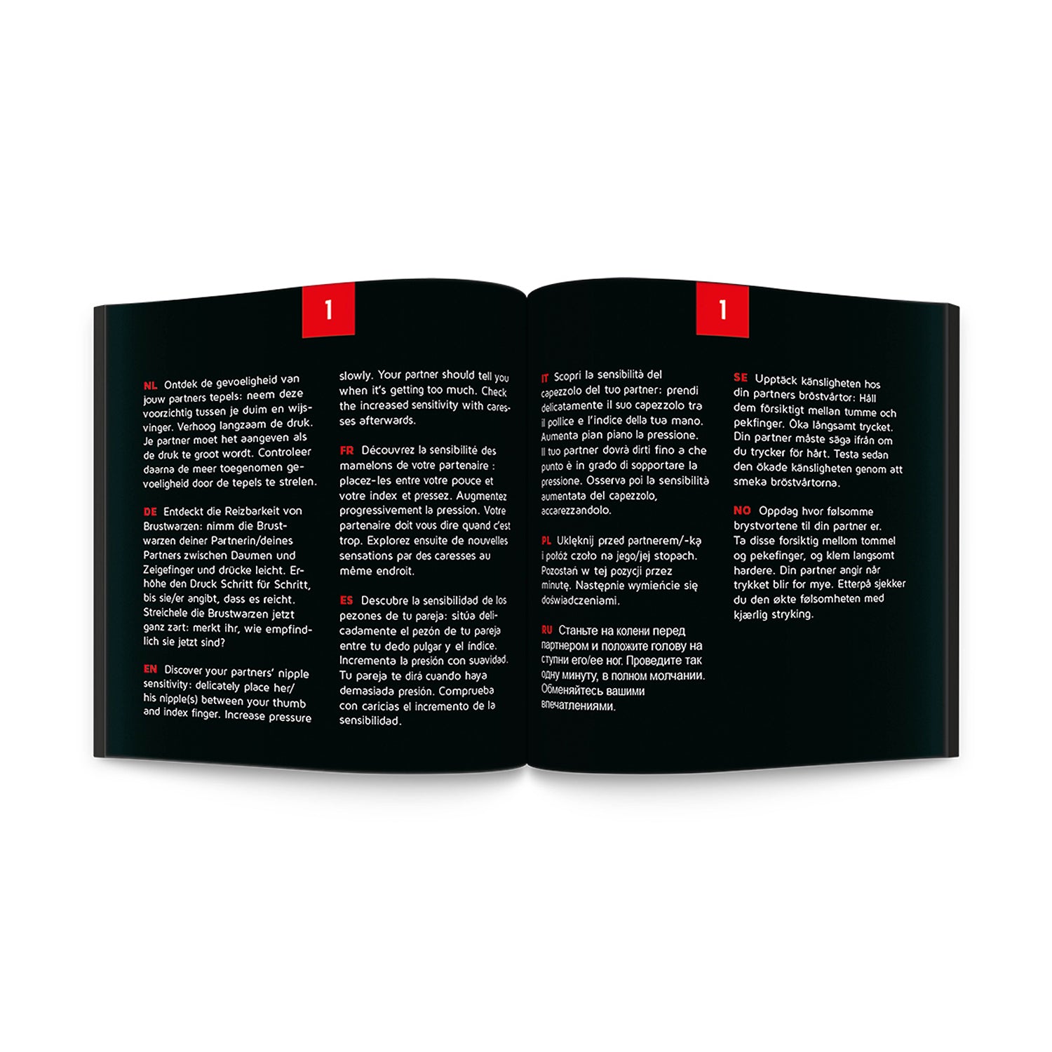Os 24 desafios da edição Kinky estão disponíveis em 10 idiomas: inglês, espanhol, francês, alemão, holandês, polaco, russo, italiano, suéco e norueguês e acescentará uma reviravolta excitante à sua vida. Uma fantasia secreta realizada ou novas sensações exploradas? Descubra os seus limites, alargue os horizontes de ambos e desfrute na sua intimidade. É marota o suficiente para arriscar?